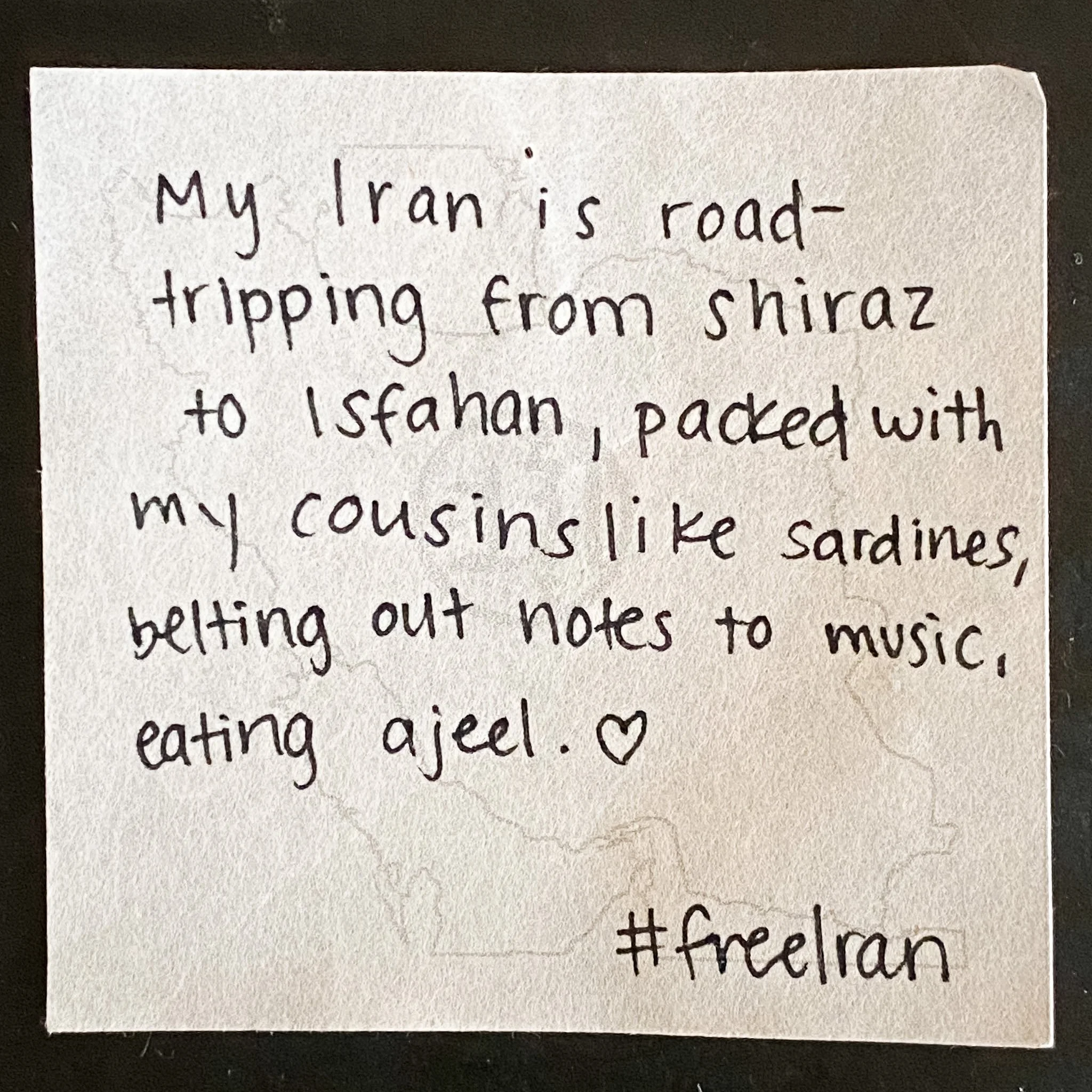 This project was started by an independent Iranian American artist in hopes to unify the Iranian community around our love and concern for our beloved Iran and to show a human dimension of this beautiful land to non-Iranians.